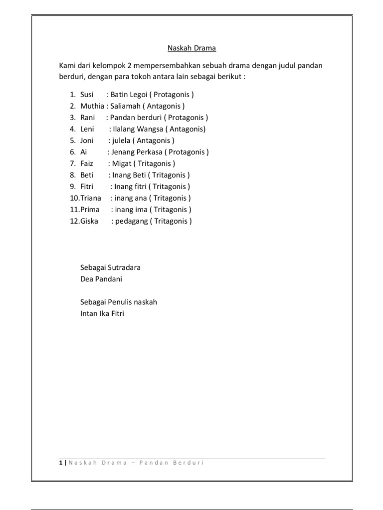 Ihwal Melayu dan Jalan Kemelayuan. Penulis memaparkan tentang salah satu bentuk pertunjukan. CEKIDOT KELOMPOK 2 1 f Drama Rakyat Melayu Riau Naskah Drama Putri Pandan Berduri Alkisah pada zaman dahulu kala di Pulau Bintan berdiam sekumpulan orang sampan.