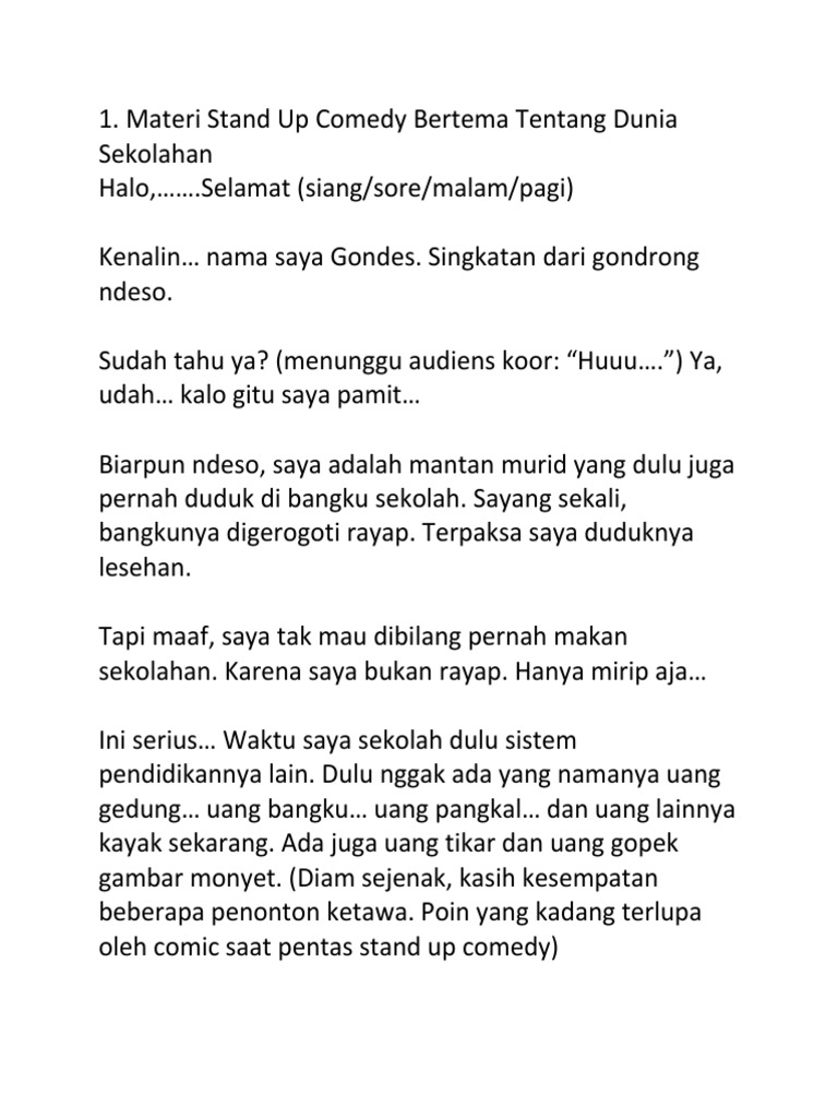 Naskah stand up comedy dodit terlucu. Materi standup comedy tentang teman Materi lelucn tentang teman bisa menjadi naskah stand up comedy terlucu singkat dan padat yang juga gak kalah gokil. Materi Stand Up Comedy Bertema Tentang Dunia Sekolahan. Gambar bakso tusuk animasi.