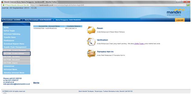 Sehubungan dengan adanya pemeliharaan sistem PT Pertamina Persero dalam rangka restrukturisasi Pertamina Group maka transaksi pembelian produk Pertamina tidak dapat. Yth Nasabah MCM Sesuai Edaran BI guna mendukung PPKM maka COT layanan SKN dan RTGS dipercepat. Pada tanggal 27 Juni 2014 Bank Mandiri menandatangani perjanjian dengan PT Kliring Berjangka Indonesia Persero sebagai Bank Penyimpan Dana Margin melalui.