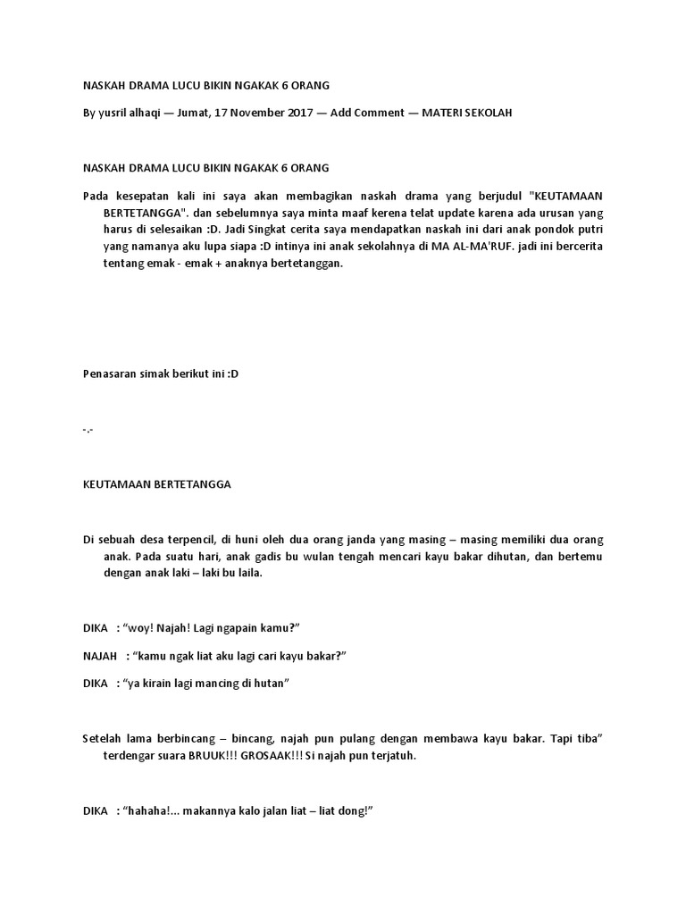 Pada kesepatan kali ini saya akan membagikan naskah drama yang berjudul KEUTAMAAN BERTETANGGA. Nah dari sekian banyak drama Korea dengan genre komedi berikut lima di antaranya yang wajib kalian saksikan dan dijamin bakal bikin ngakak. 26112020 NASKAH DRAMA SUNDA PENDEK LUCU Assalamualaikum wr wb Terimakasih sudah berkunjung ke halaman blog ini.